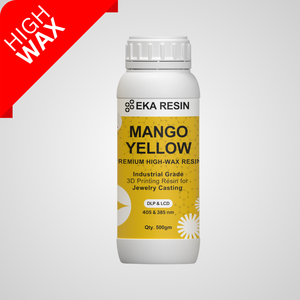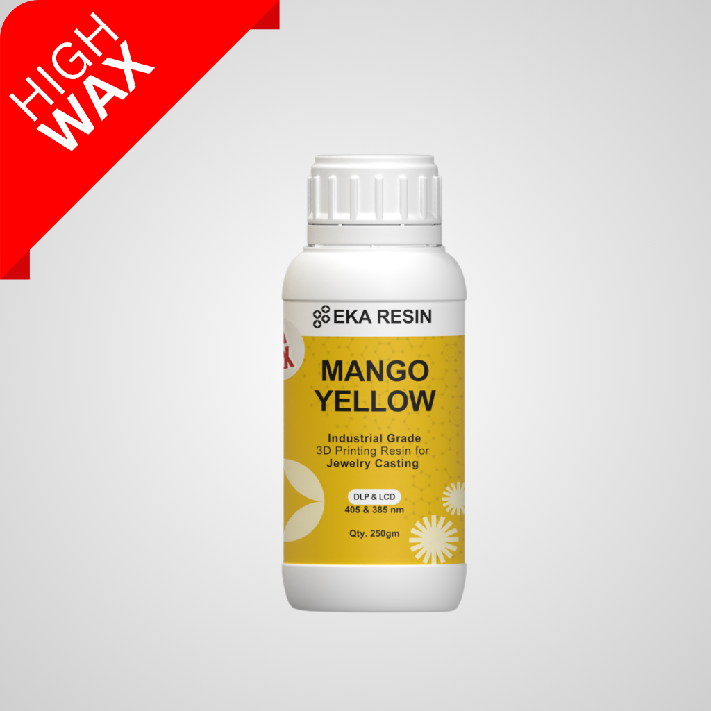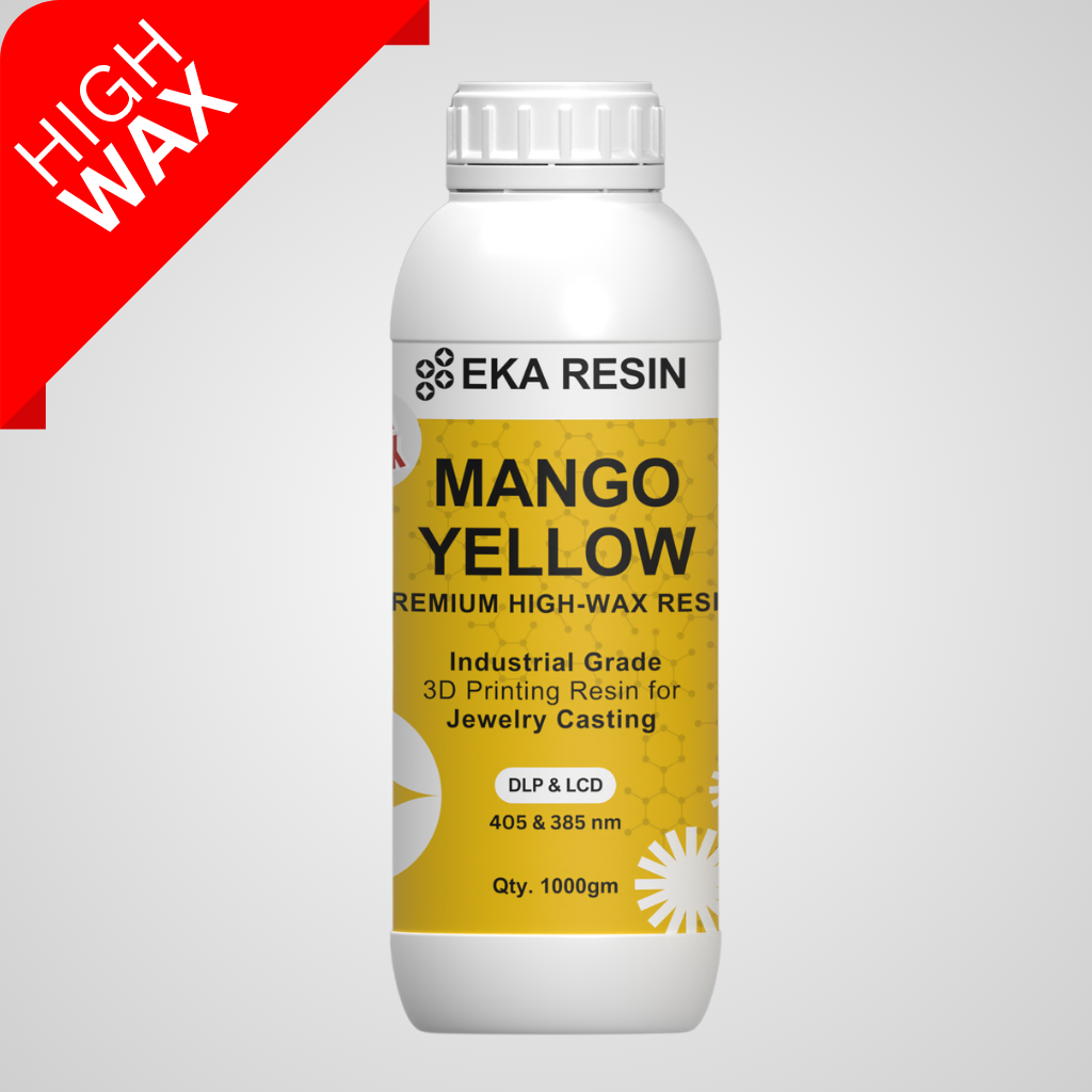 The EKA High Wax Direct Castable Resin Mango Yellow delivers excellent dimensional accuracy, smooth surface finish, and consistent performance across professional workflows. It is compatible with SLA, DLP, and LCD 3D printers, ensuring reliable print quality and superior casting results.
